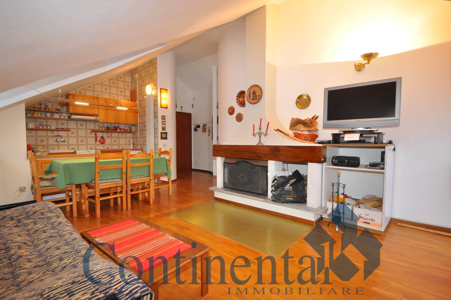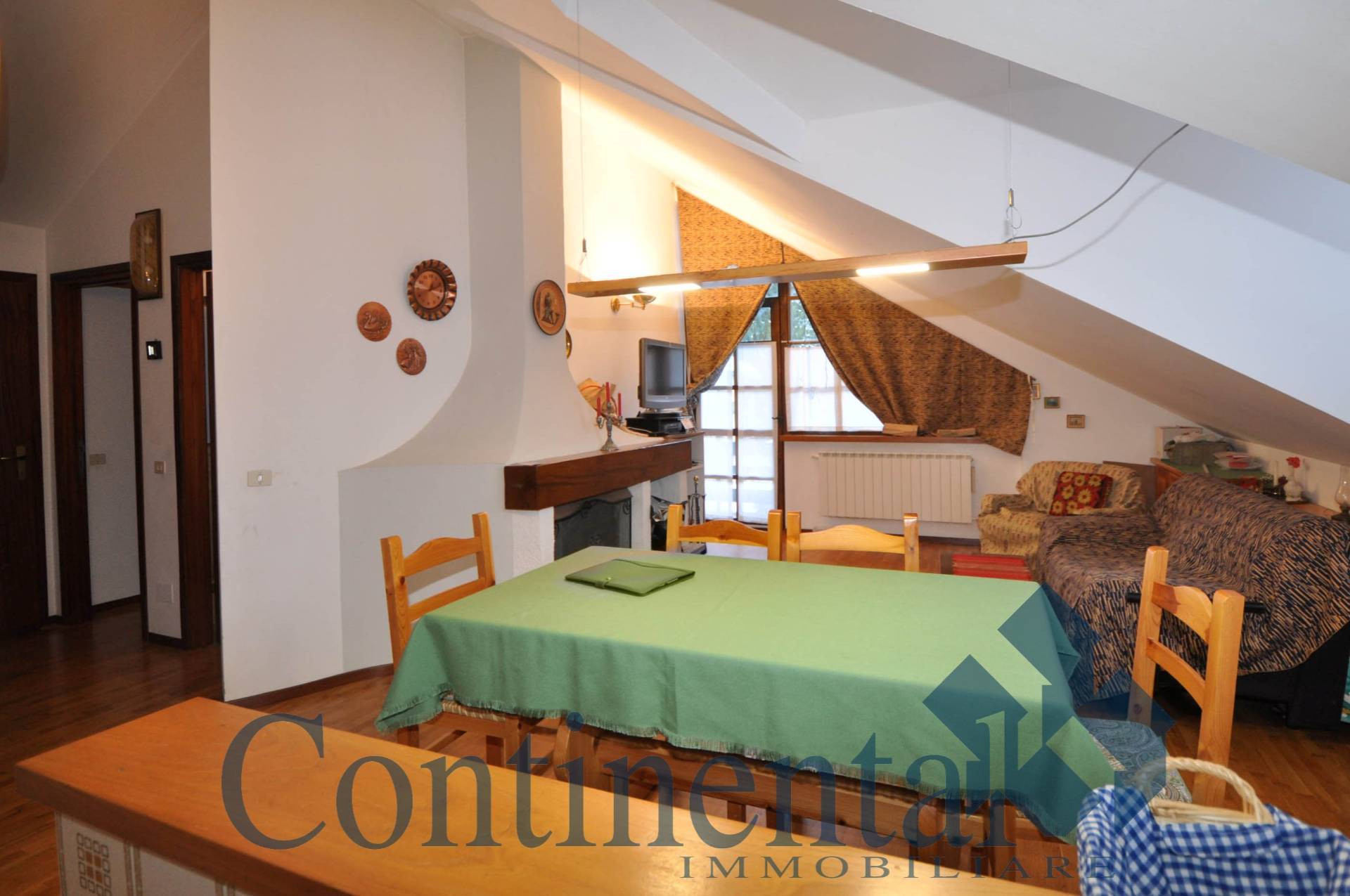 Scopri il fascino caldo e accogliente della mansarda montana, completamente arredata e pronta da vivere. L'appartamento è composto da: luminoso soggiorno con caminetto e balcone, angolo di cottura dotato di comodo ripostiglio/dispensa. Il disimpegno conduce alla camera da letto, a due locali pluriuso ed al bagno. Il riscaldamento autonomo a metano, combinato con il calore del caminetto, garantisce comfort in ogni stagione. A completare la proprietà: cantina e garage al piano seminterrato, oltre a un'ampia sala condominiale.